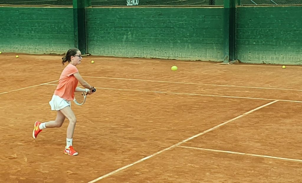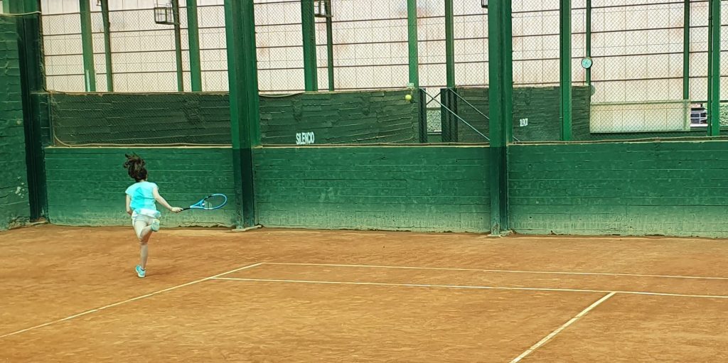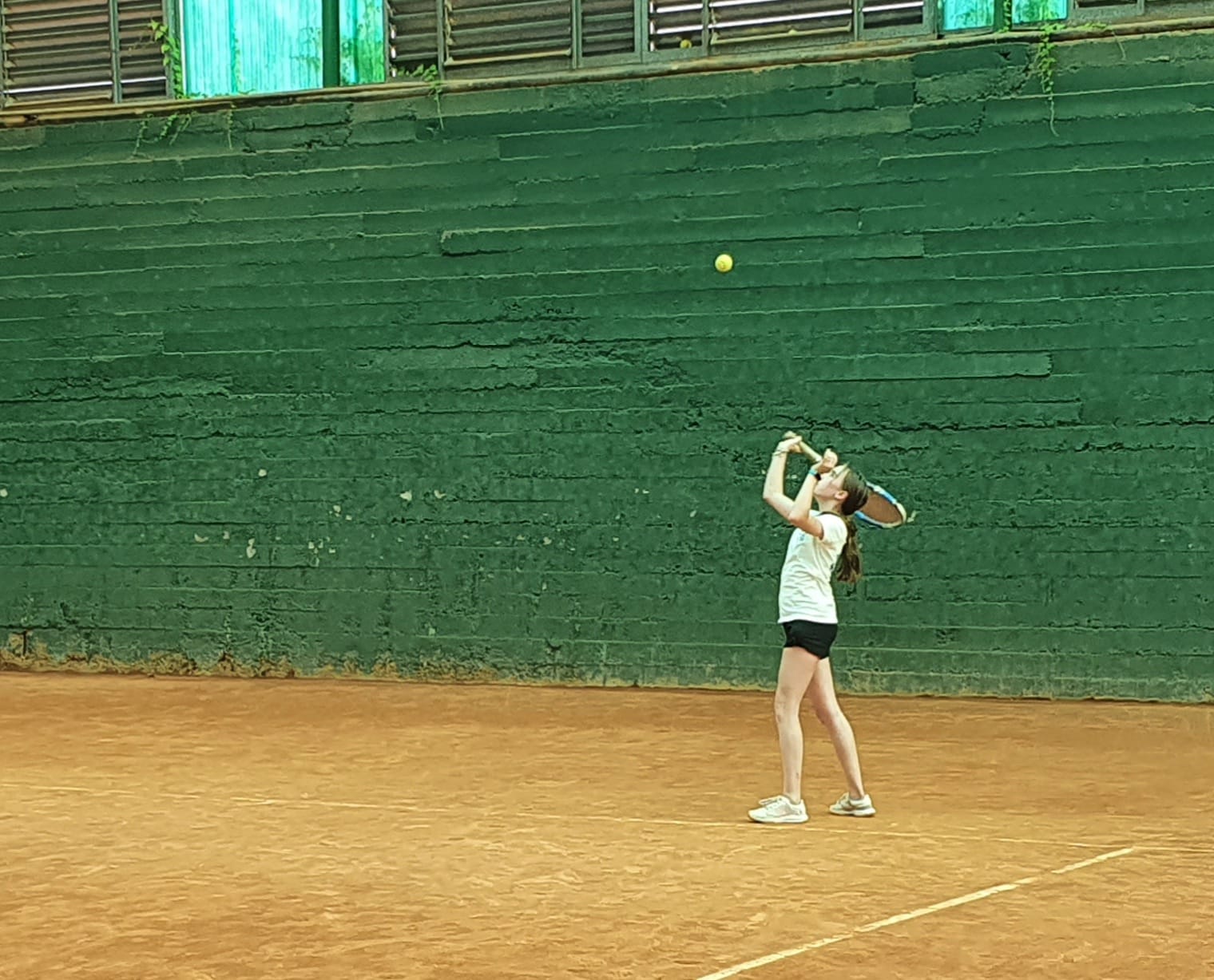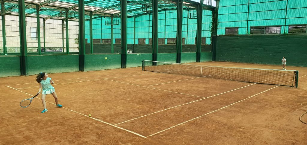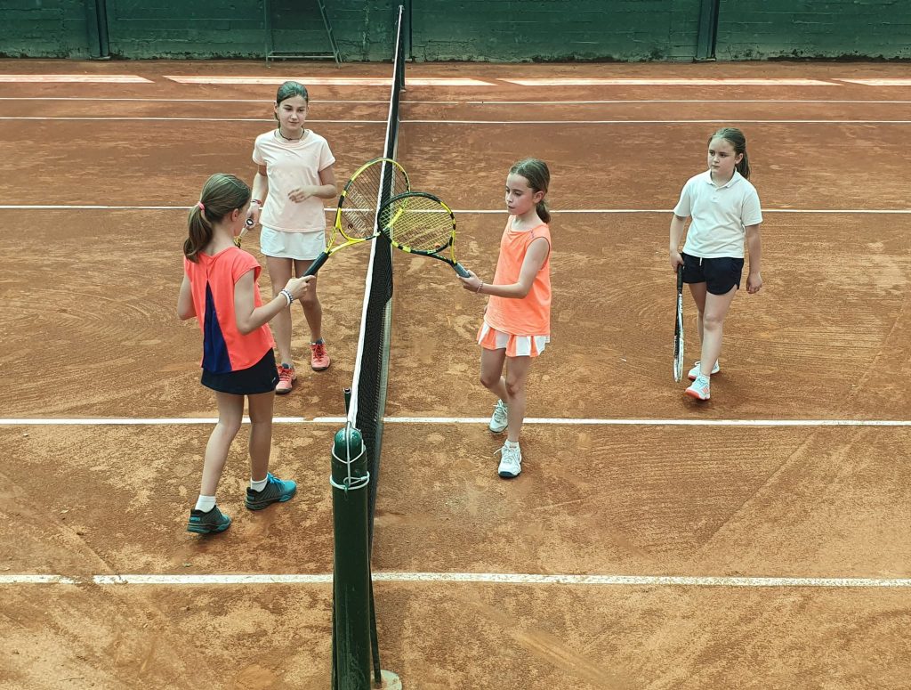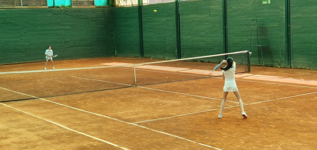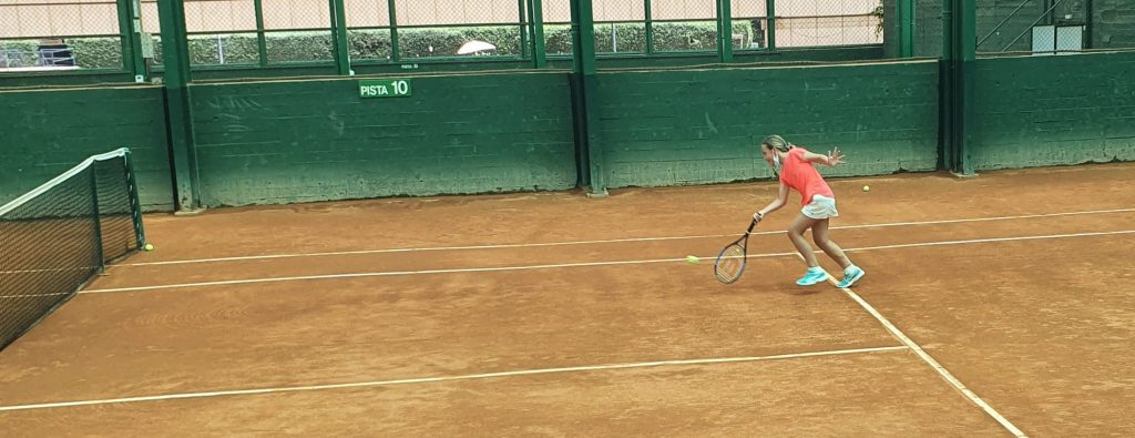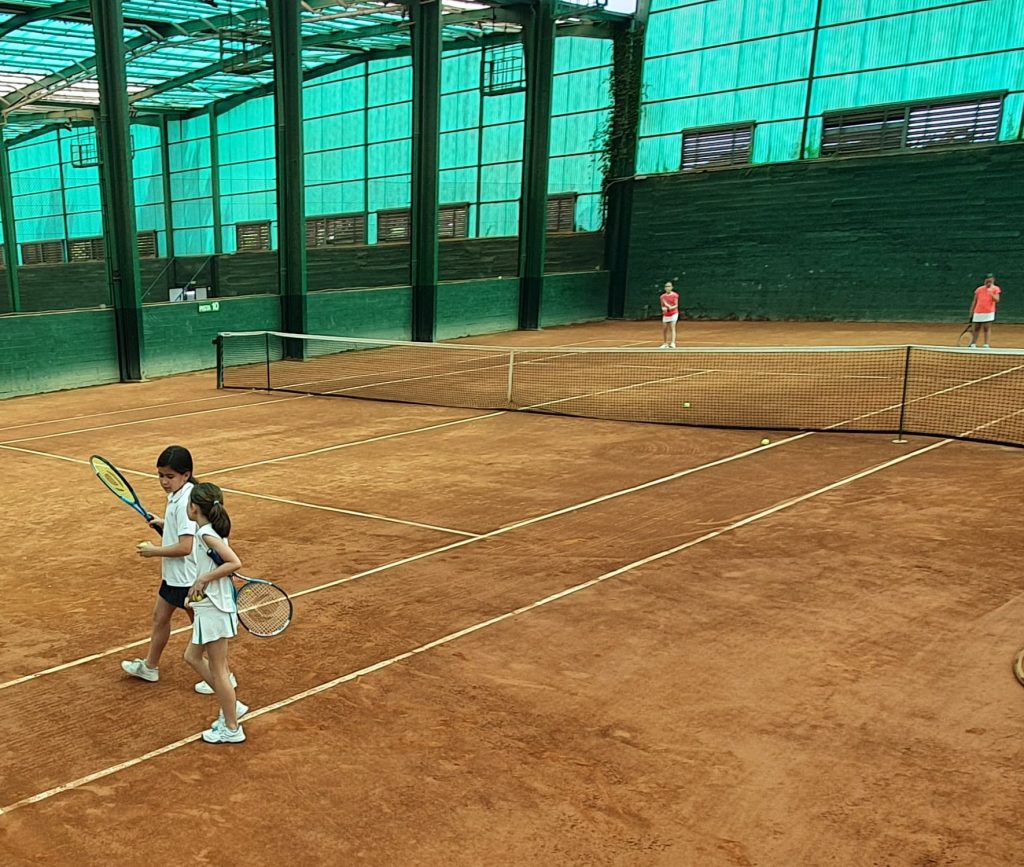 Hemos disputado partidos a 4 juegos en formato Round Robin o todos contra todos, mientras, el jugador que no jugaba, entrenaba con el profe en la pista de entrenamiento.