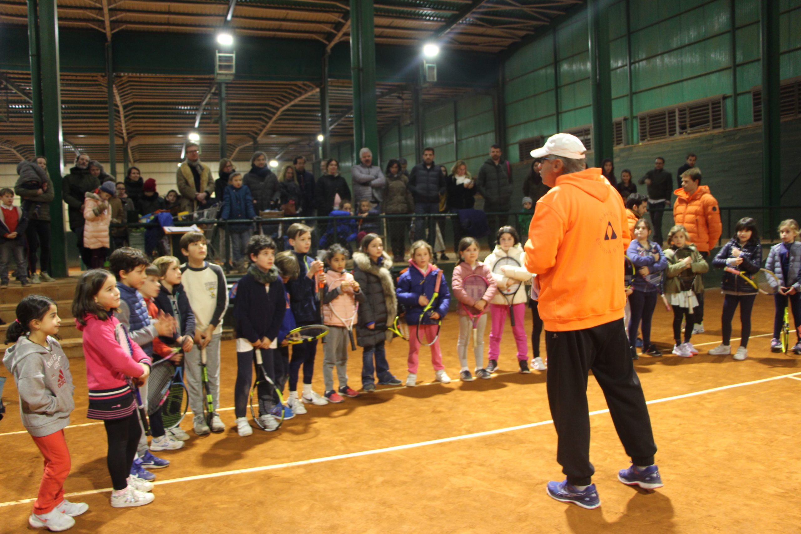 Mientras, en la pista de entrenamiento se jugaba uno de los juegos preferidos de los niños, que además sirve para mejorar la consistencia en el juego. «La vuelta al mundo» que ha repartido puntos para todos.