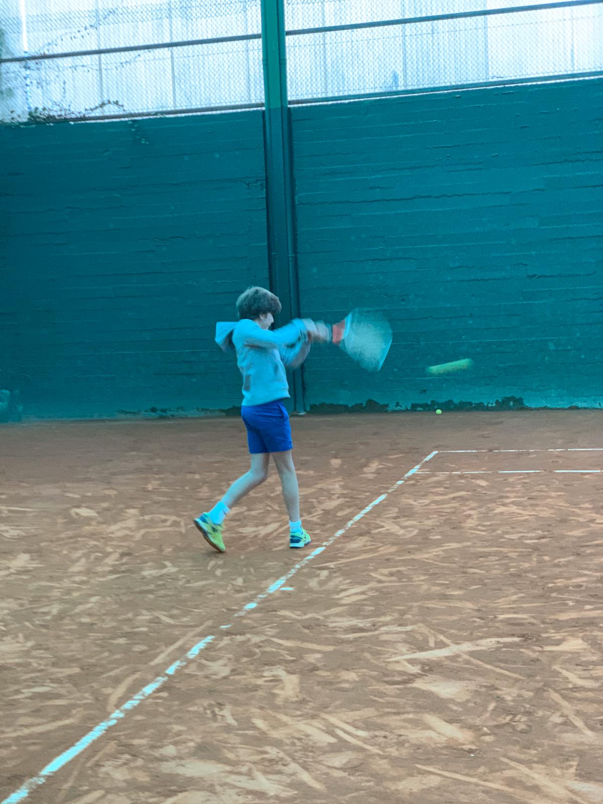 Esta vez elegimos el modelo Round Robin por tiempo, con la ayuda del Dominik (profe) Motivación extra para los participantes, ya que este tenía que enfrentarse a todos ellos. En las 4 pistas se desarrollaban los emocionantes partidos. Y digo emocionantes porque cada vez disfrutamos más de estos enfrentamientos dado el alto nivel y experiencia que las jugadores están alcanzando año tras año. Gracias a la cantidad de partidos que van sumando en este tipo de iniciativas por parte de la escuela.