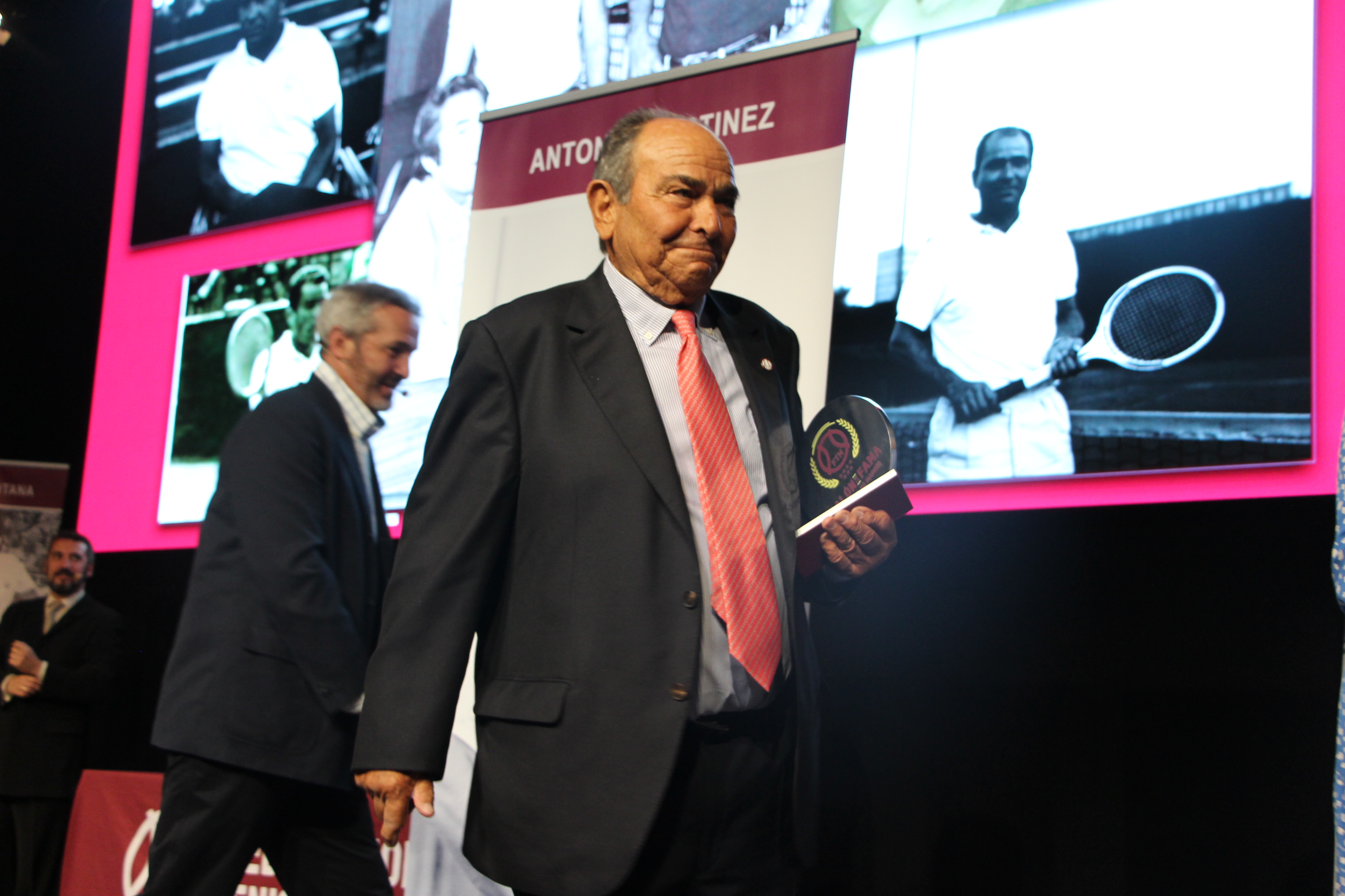Antonio disfrutó en la gala del reencuentro con figuras y personalidades del tenis de todos los ámbitos, que le mostraron su respeto y alegria por el galardón, pero sin duda ha sido especialmente emotivo su reencuentro con Manolo Santana, con el que tantas experiencias dentro y fuera de la pista ha vivido como puso de manifiesto en las palabras que dedicó a todos los presentes y que podéis ver y escuchar en el siguiente vídeo.