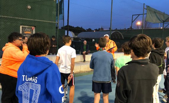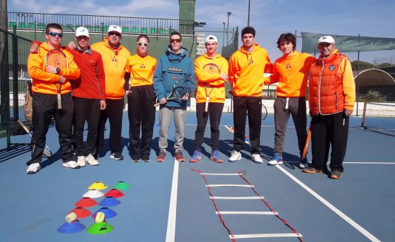 En la pista de entrenamiento dirigida por Jorge Ruíz se hacían juegos con saque y con mucho ritmo, así los jugadores estaban preparados y entraban a tope a disputar sus enfrentamientos cuando se les llamaba para jugar.