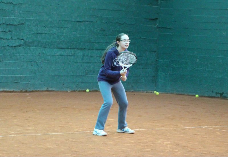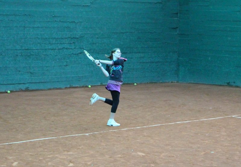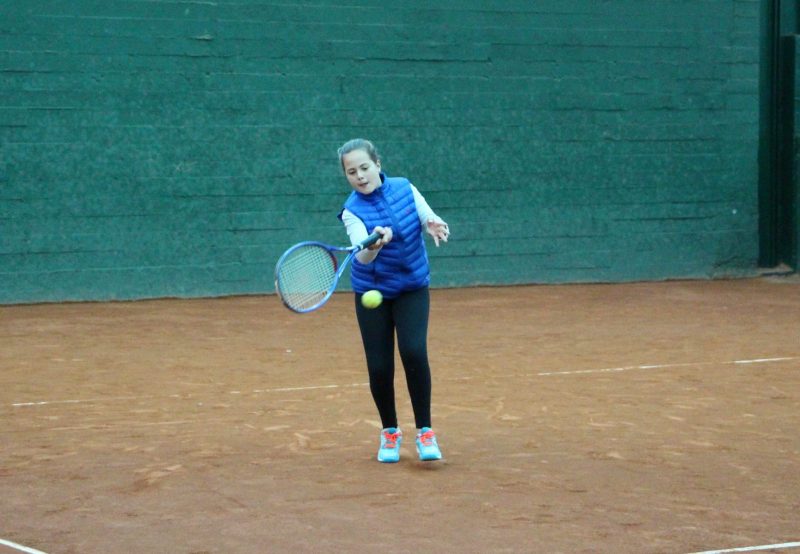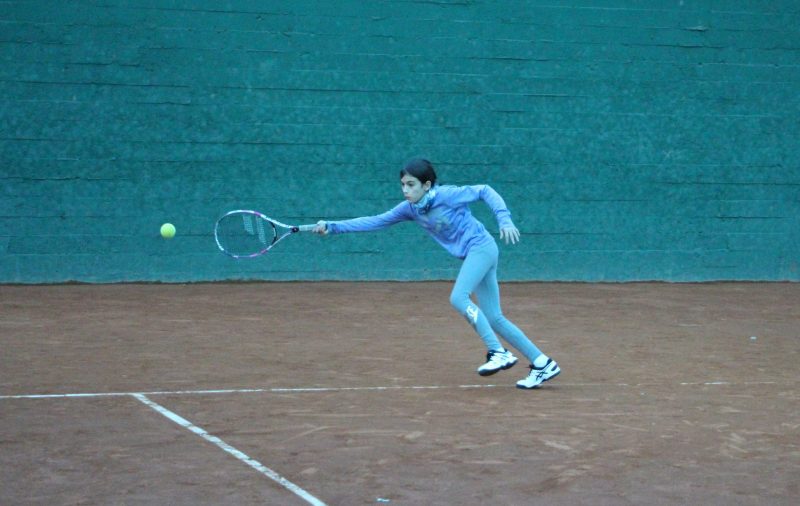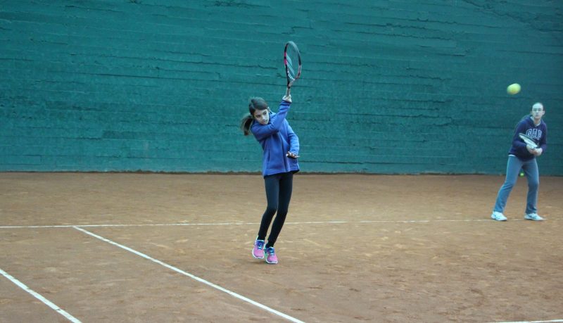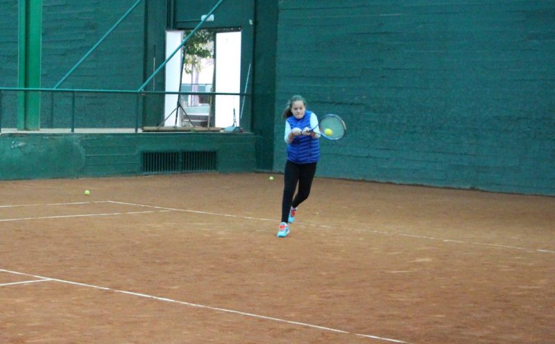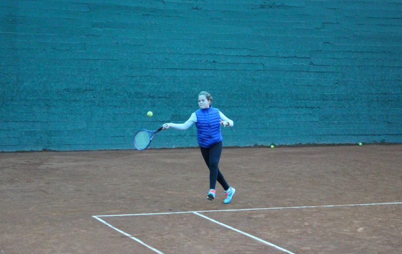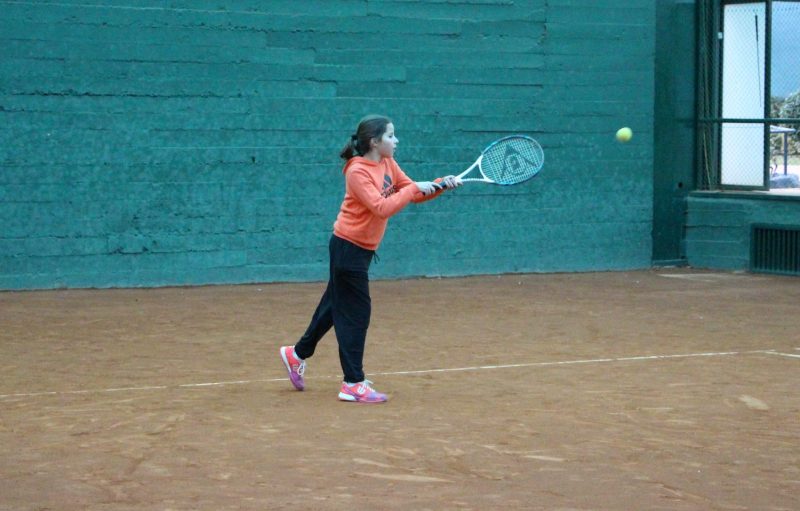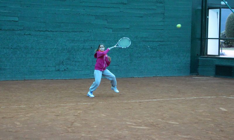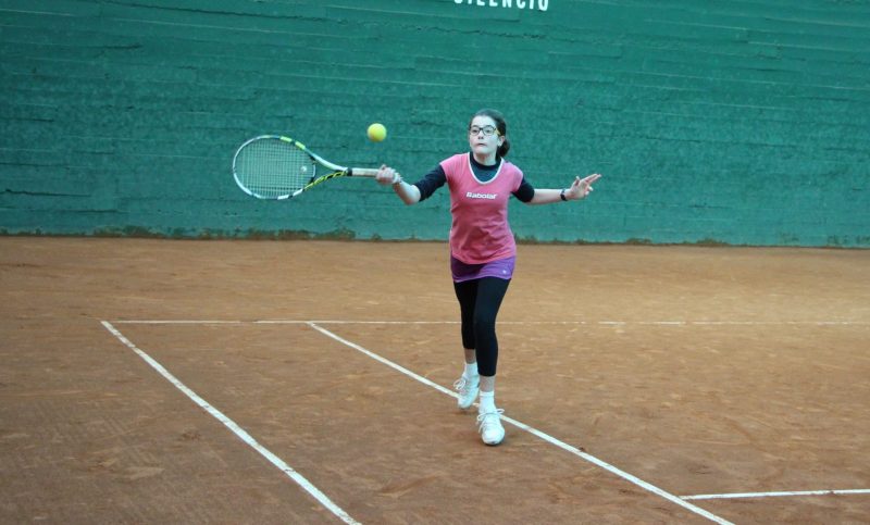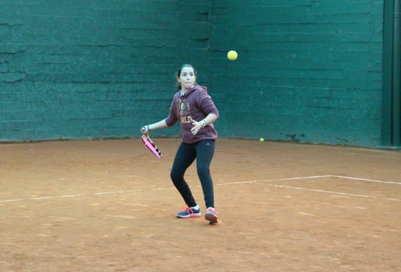 Natalia golpeando de derecha