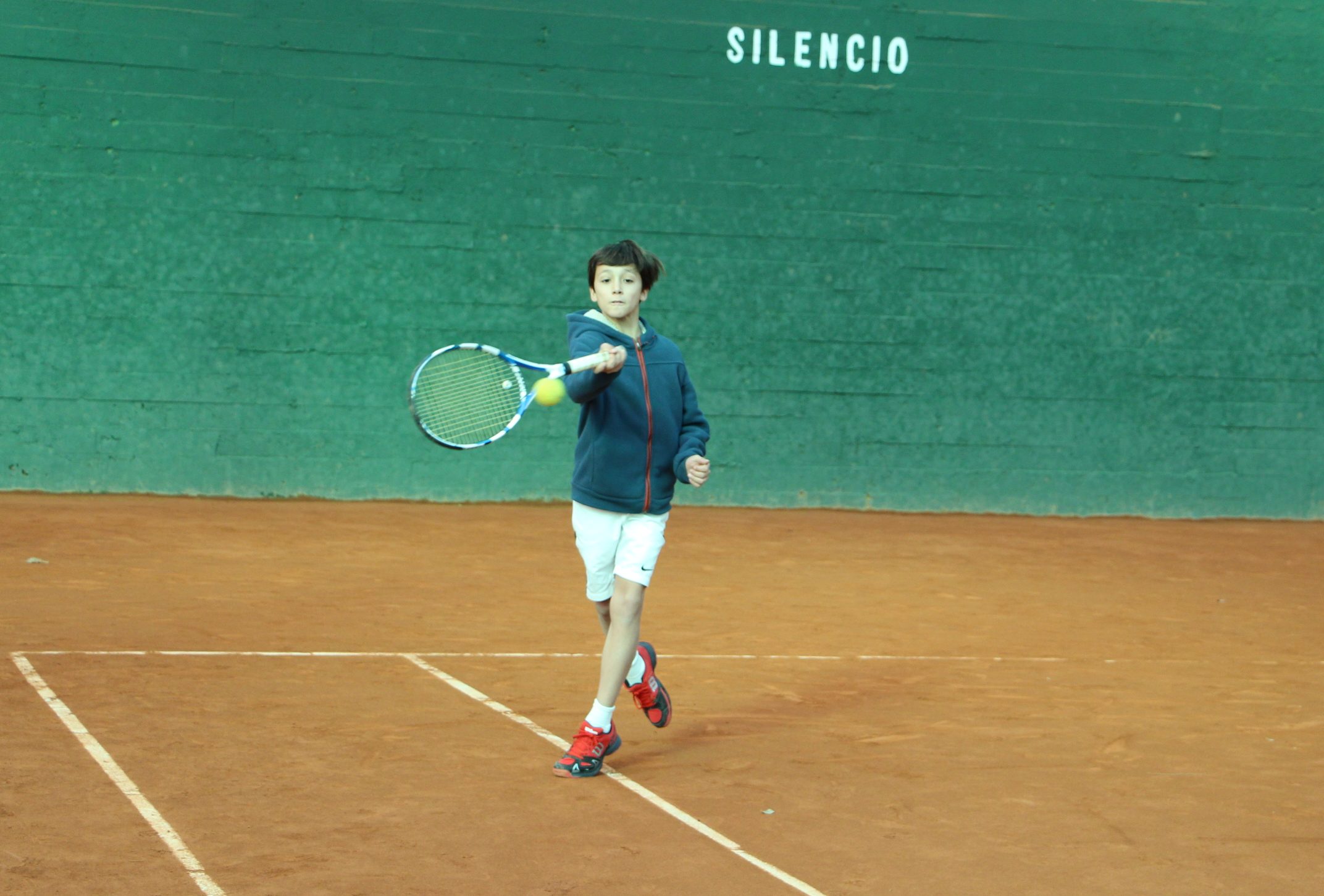 Nicolo en acción, golpeando de revés