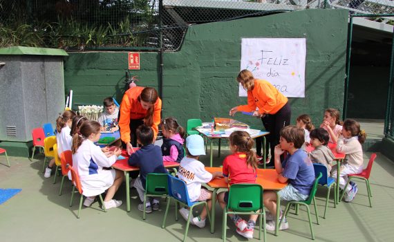 La segunda jornada estuvo dedicada a la mayor competición por equipos (países) del tenis, La Copa Davis. Como siempre y aprovechando la capacidad de imaginación de los niños, les introducimos en una competición por equipos parecida a lo que más adelante experimentaran con la Liga de Promoción y Juvenil. Fue una jornada colorida y muy deportiva para los jugadores y para los profesores que les acompañamos en todos sus aprendizajes.