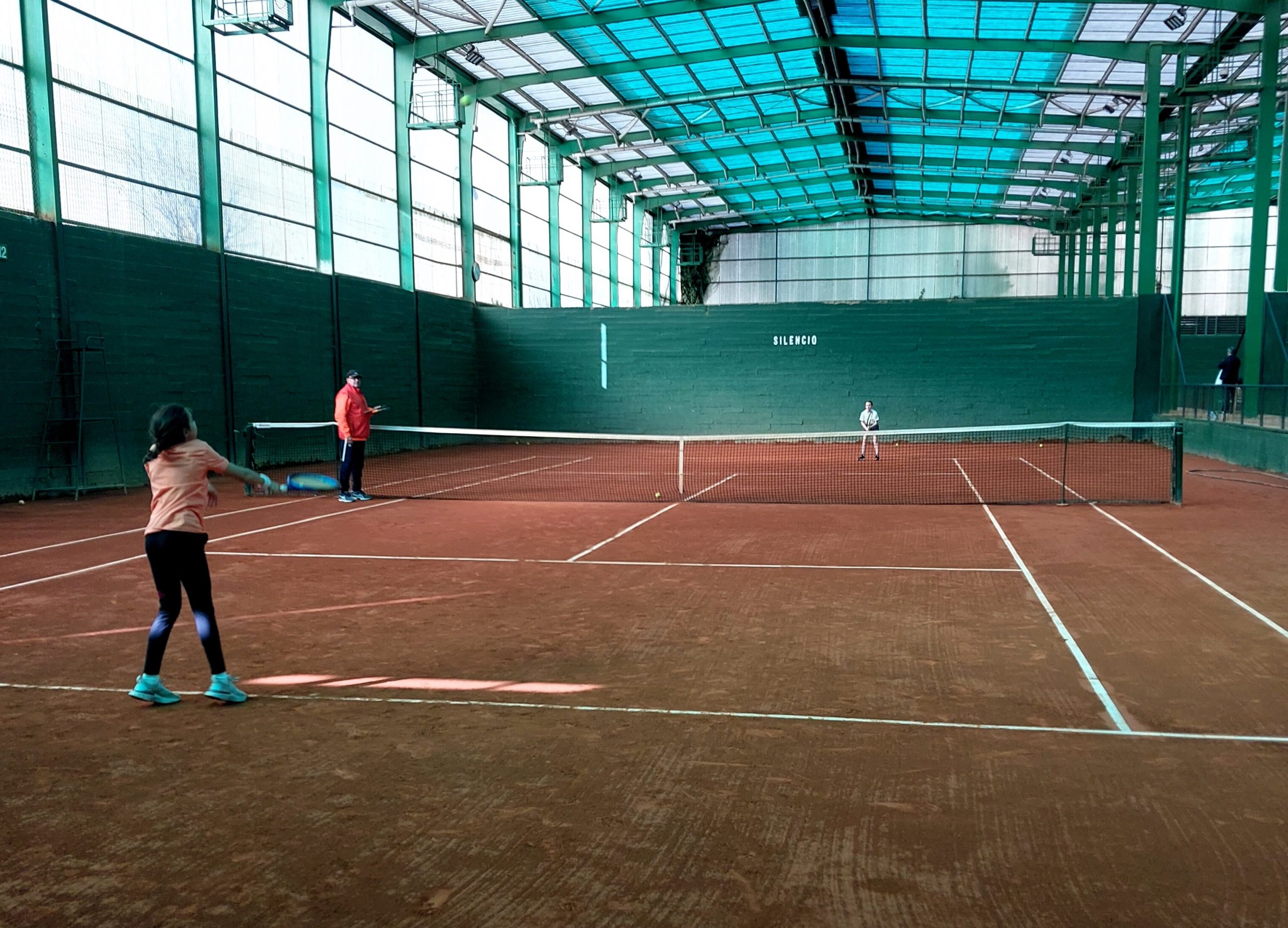 Una vez comenzados los enfrentamientos, los niños que esperaban a sus rivales practicaban en la pista de entrenamiento, donde uno de los monitores de la escuela les ayudaba para mejorar.