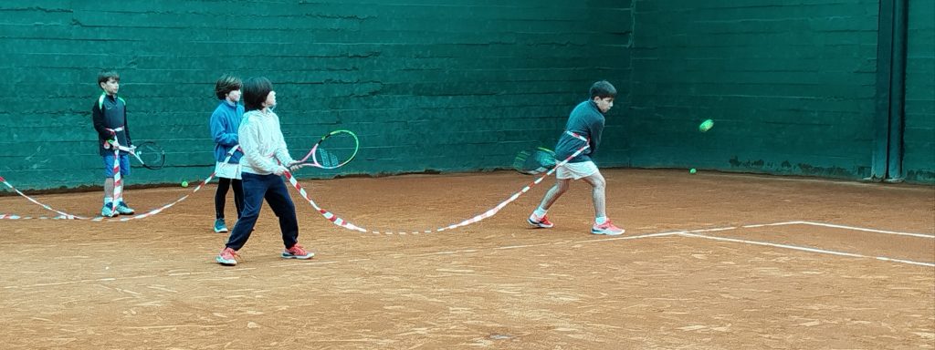 La jornada ha comenzado con una presentación de la jornada que en esta ocasión está enfocada a las jornadas de competición por equipos, donde son también muy importantes los puntos conseguidos con el doble. Por ello, en la primera parte de la sesión, los técnicos de la escuela han realizado distintos ejercicios para que los jugadores entendiesen aspectos como, colocación de la pareja en la pista, cubrir la pista con pelota y sin pelota, reacción de la pareja ante las bolas cortas y globos y comunicación entre la pareja de dobles.