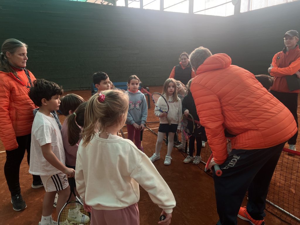 Acto seguido y mientras parte del equipo realizaba un breve calentamiento físico, el responsable del grupo, Ricardo Sánchez ha explicado a los padres y familiares presentes las características del grupo, los beneficios de la competición adaptada a estas edades y niveles y las peculiaridades de este nivel que utiliza ayudas al juego como poder devolver la pelota tras un segundo bote o tener un comodín de 5 segundos por punto para poder mantener la pelota en juego. También hemos contado a los padres nuestro esfuerzo en reforzar la demostración de valores deportivos, que en esta competición se valoran al igual que los resultados deportivos.