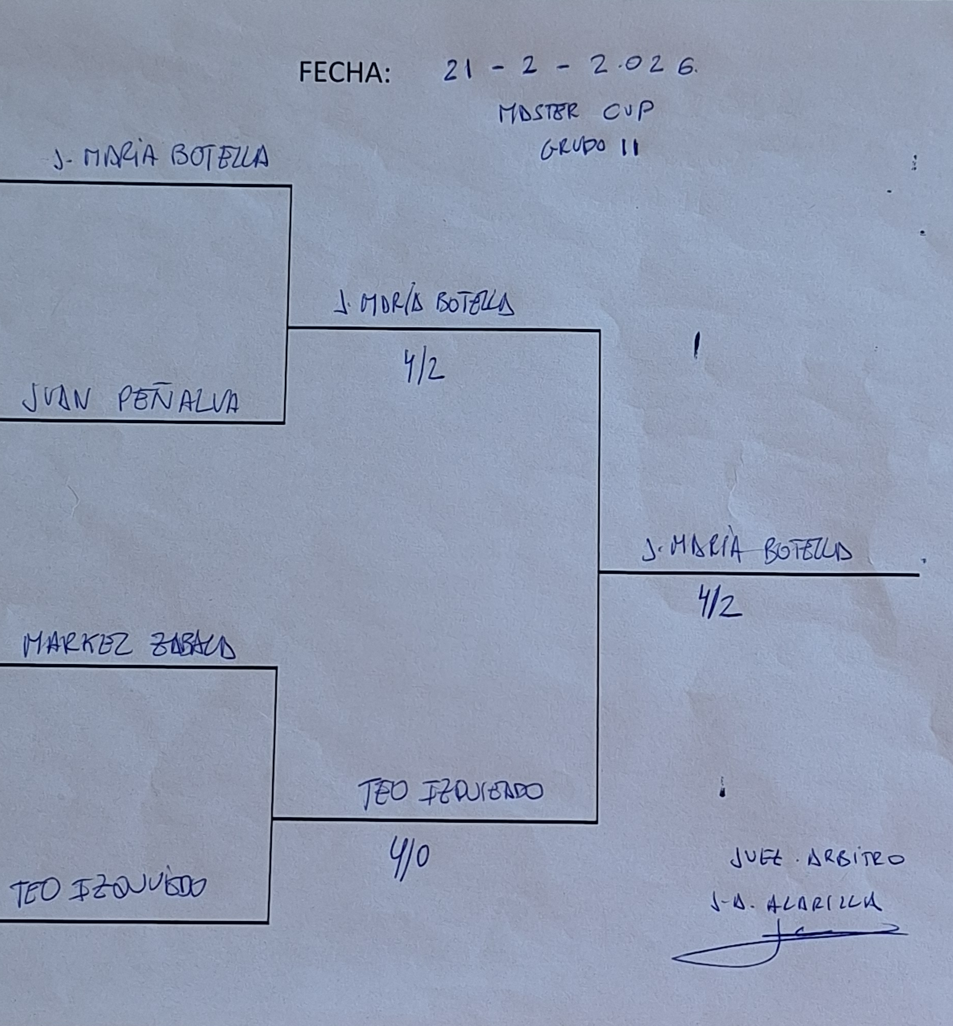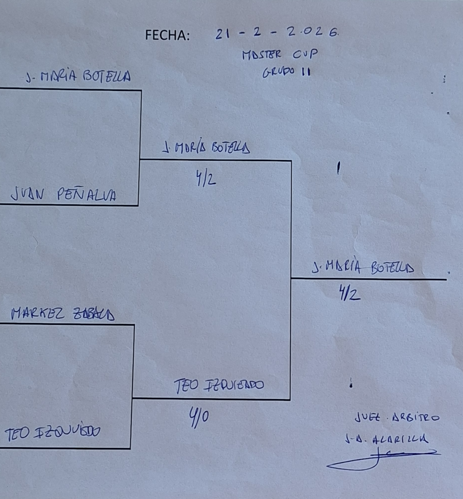 Category:Sin categoríaEl sábado 21 de febrero tuvo lugar la segunda jornada de la Master Cup 2026 en las pistas cubiertas del C.T. Chamartín a las 18 h. En esta ocasión el equipo tècnico estuvo compuesto por José Antonio Alarilla como responsable del grupo11 y Denis Siclitaru como monitor auxiliar.