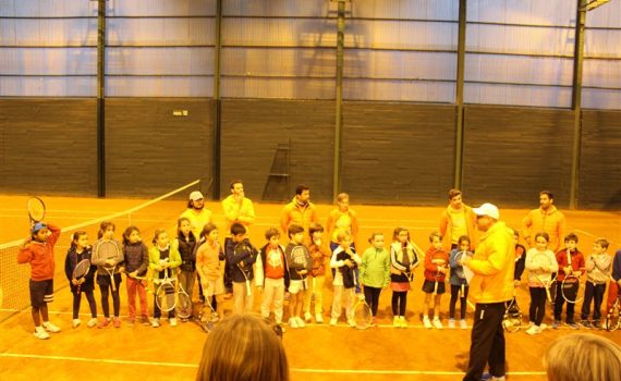 Como cada jornada, comenzamos con el calentamiento de los participantes, y en esta ocasión el profesor responsable del grupo Ricardo Sánchez ha procedido a explicar a los padres y familiares el por que de la forma de jugar de estos niños, las ayudas disponibles para conseguir que puedan hacer deporte en primer lugar, y devolver un mayor número de bolas después, sin limitarse a devolver las bolas que les lleguen «a la mano».»
