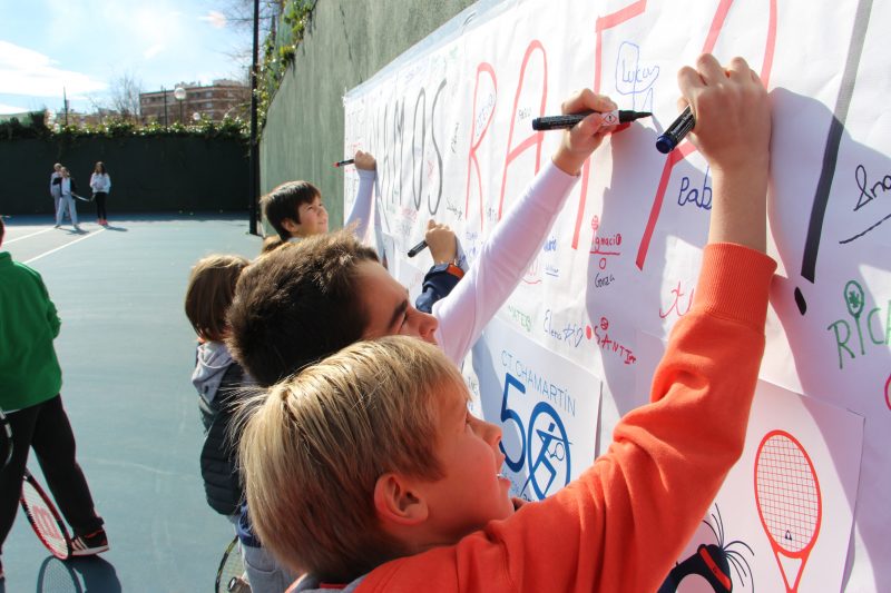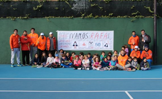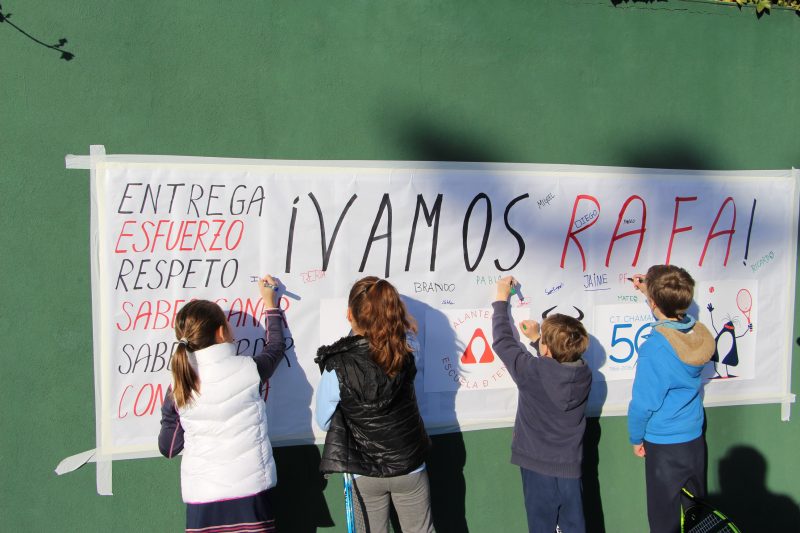 Ahora mismo, Rafa Nadal esta en el candelero por sus resultados en el Open de Australia’17 y desde la escuela de tenis queremos rendirle un pequeño homenaje. Hemos confeccionado una pancarta de apoyo a Nadal, que trataremos de hacerle llegar por tweeter, los niños han ido rellenandola con sus nombres y después se han fotografiado con sus compañeros con ella.