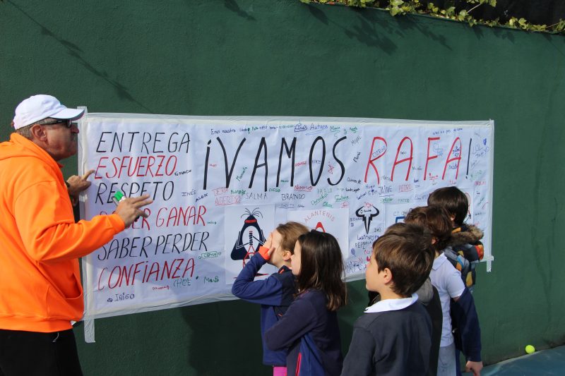 Compartimos los valores que inspira Rafa y que hemos sintetizado en entrega, esfuerzo, respeto, saber ganar, saber perder y confianza. Son contenidos que consideramos que es importante que los alumnos primero conozcan y después valoren, para complementar su aprendizaje como deportistas y como personas.