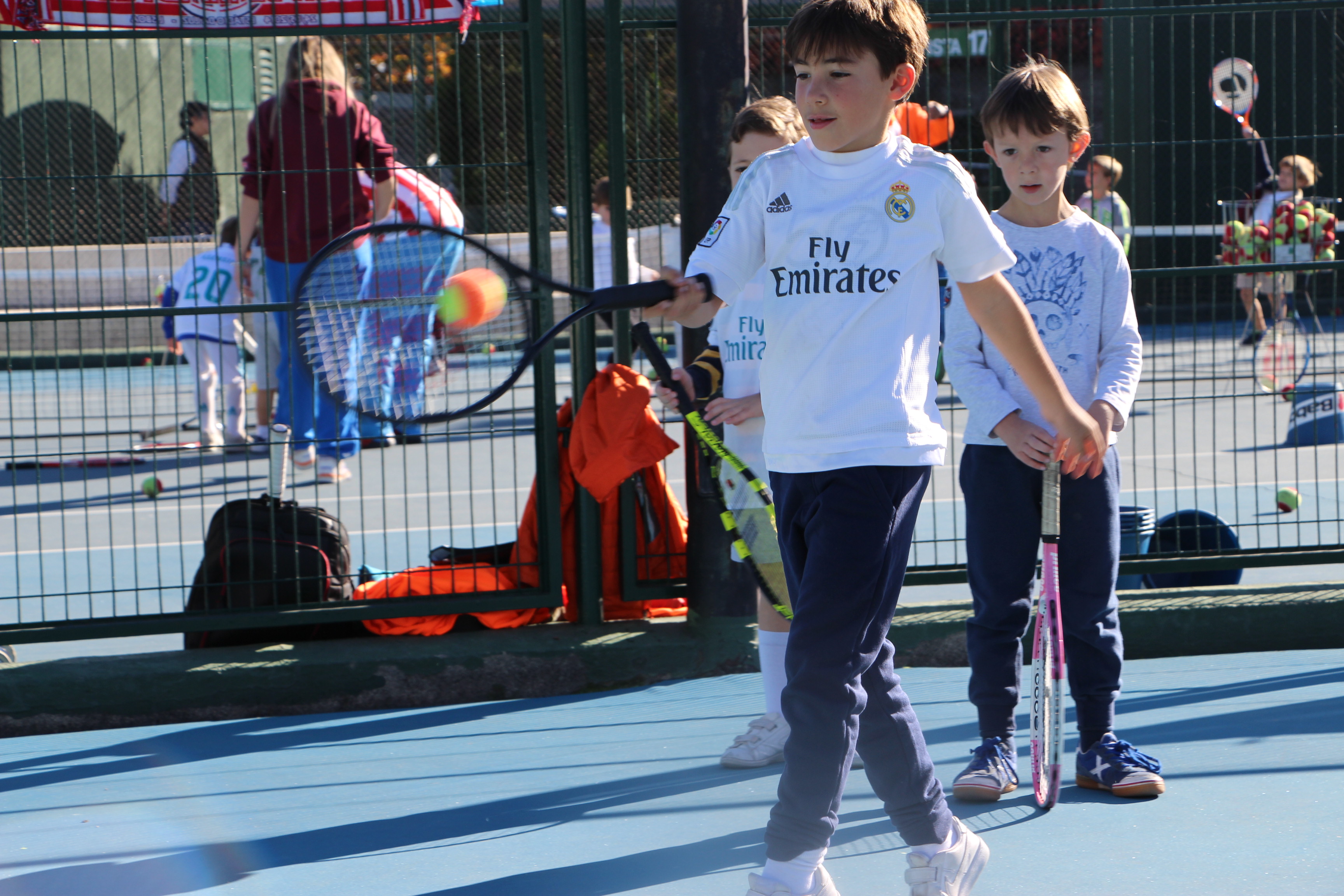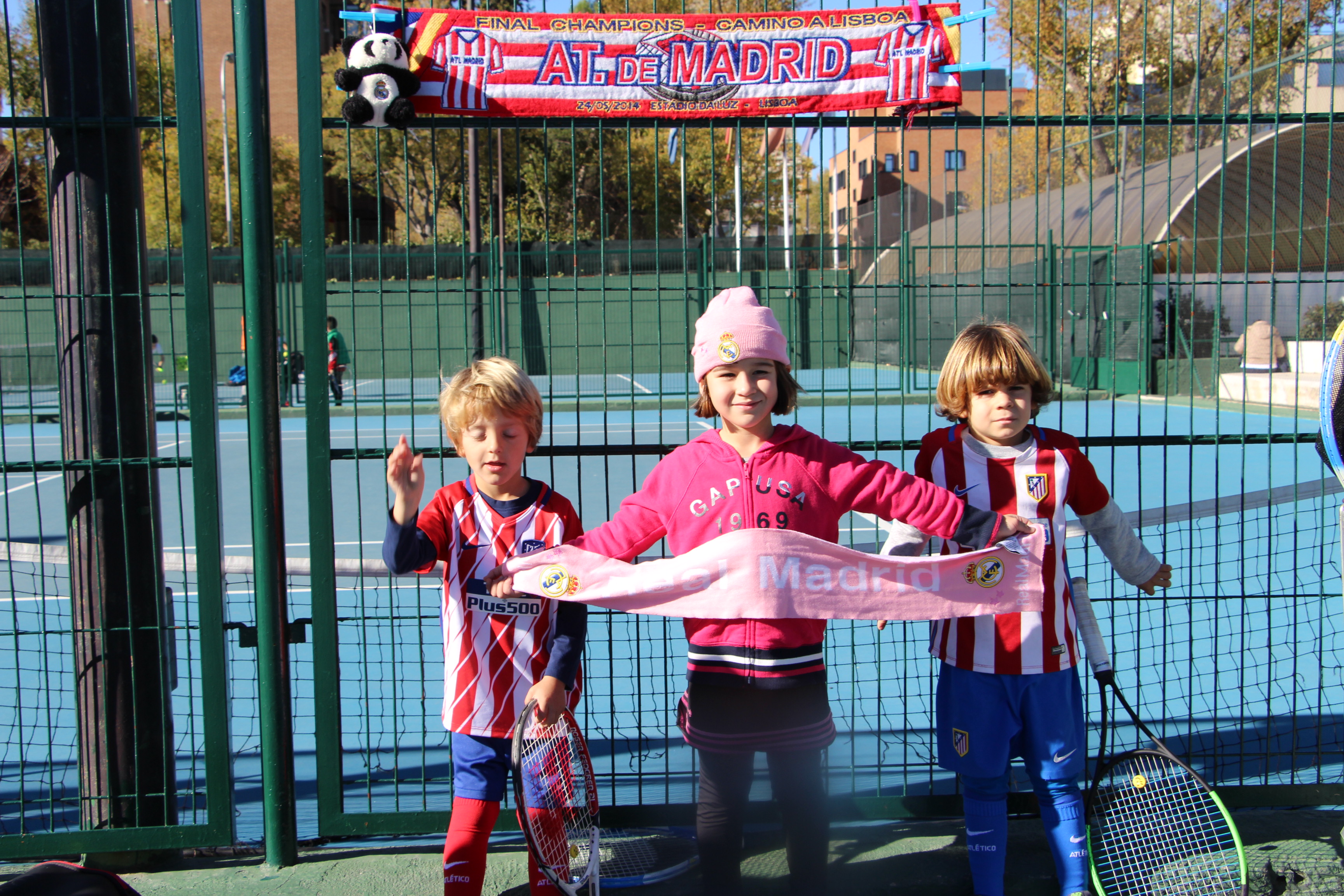 Category:Sin categoríaEl sábado 18 de Noviembre los alumnos de la escuela de tenis han venido a jugar con la camiseta de su equipo madrileño favorito para animar a su equipo antes del derbi madrileño.
