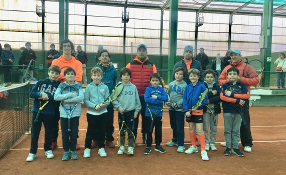 El objetivo de esta jornada ha sido enseñar a los alumnos como se confeccionan y juegan los cuadros eliminatorios, en pista completa, dos saques con bola de punto verde y sin más ayuda que poder realizar el segundo saque por abajo desde la linea de fondo.